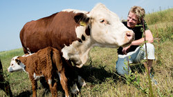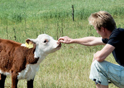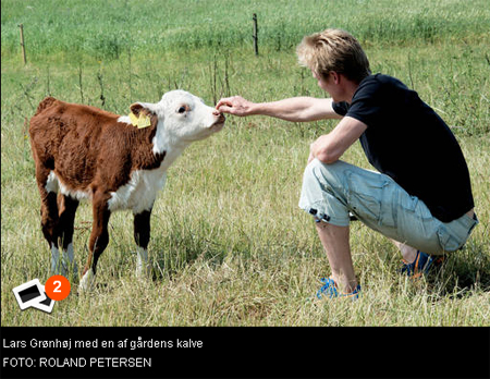 Kalvene og køerne er af racen Hereford, hvilket er en engelsk kvægrace som kan opnå en vægt på op til 1100 kg. Hereford kvæg er karakteriseret ved en rigtig god tilvækst, et dejlig roligt temperament og god frugtbarhed. På grund af sin hårdførhed kan den gå ude hele året, hvilket vi finder meget attraktivt, da vi ønsker at give dyrene et så naturligt dyreliv som muligt. Dette bevirker også, at kødet er meget saftigt og mørt, og så smager det helt fantastisk.